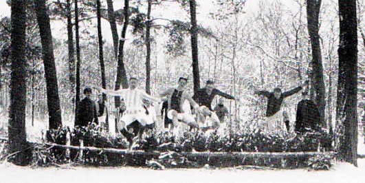 Foto 2: Beter af waren de geïnterneerde Belgische soldaten in kamp Harderwijk. In het kamp bevond zich, behalve een grote wielerbaan waar wekelijks internationale koersen werden gehouden, ook een groot theater, decor van vele bokswedstrijden.